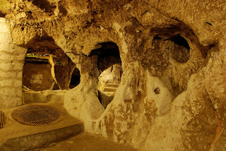 υπόγειες πόλεις με σήραγγες πολλών χιλιομέτρων.Μια από τις βαριές πέτρινες πόρτες, οι οποίες απομόνωναν το υπόγειο συγκρότημα από τον έξω