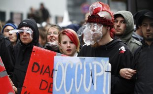 | Έξω το ΔΝΤ από την Ελλάδα φώναξαν 7.000 Γερμανοί - Στην Ελλάδα πίναμε καφεδάκι! Έξω το ΔΝΤ από την Ελλάδα φώναξαν περίπου 7.000 διαδηλωτές στην Φρανκφούρτη της Γερμανίας σε μία συγκέντρωση κατά της πολιτικής λιτότητας.Χρησιμοποιώντας σπρέι πιπεριού και γκλομπ η γερμανική αστυνομία προσπάθησε να διαλύσει τη συγκέντρωση του αντικαπιταλιστικού κινήματος Blockupy που είχε οργανωθεί, για δεύτερη συνεχόμενη ημέρα, στη Φραγκφούρτη, σε ένδειξη διαμαρτυρίας για την πολιτική λιτότητας που εφαρμόζεται στην Ευρώπη. Περίπου 7.000 διαδηλωτές συμμετείχαν στην πορεία και πολλοί από αυτούς κρατούσαν πανώ με συνθήματα όπως "Έξω το ΔΝΤ από την Ελλάδα" και "Κάντε έρωτα, όχι πόλεμο". Η έναρξη της κινητοποίησης ήταν ειρηνική αλλά στη συνέχεια μικρές ομάδες κουκουλοφόρων άρχισαν να εκτοξεύουν πέτρες και καπνογόνα εναντίον των αστυνομικών που απάντησαν δυναμικά. Πολλοί διαδηλωτές και αστυνομικοί τραυματίστηκαν. Διαδηλώσεις εναντίον της τρόικας των διεθνών πιστωτών --ΔΝΤ, ΕΚΤ και ΕΕ-- επρόκειτο να πραγματοποιηθούν σήμερα και σε πολλές άλλες χώρες της Ευρώπης μετά την επιτυχημένη κινητοποίηση της Παρασκευής στη Φραγκφούρτη, όταν οι συγκεντρωμένοι κατάφεραν να αποκόψουν την πρόσβαση στα γραφεία της ΕΚΤ και την έδρα της Deutsche Bank. Added (02-ΙΟΥ-2013, 5:08 PM) --------------------------------------------- Πηγη , http://www.apocalypsejohn.com