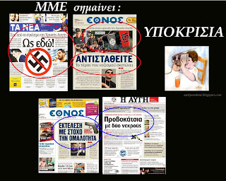 ΣΧΟΛΙΟ Και να μην είσαι οπαδός της Χρυσής Αυγής δεν μπορείς να μην αντιληφθείς την διαφορά παρουσίασης των δύο τραγικών δολοφονιών.... Η υποκρισία των ΜΜΕ (Μέσων Μαζικής Εξαπάτησης)...